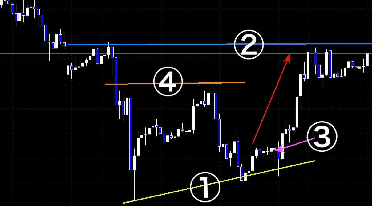 W底でエントリーする場合、W底が完成してからでは遅い!優位性のあるW底になる蓋然性が高い時に右底でエントリーをする!