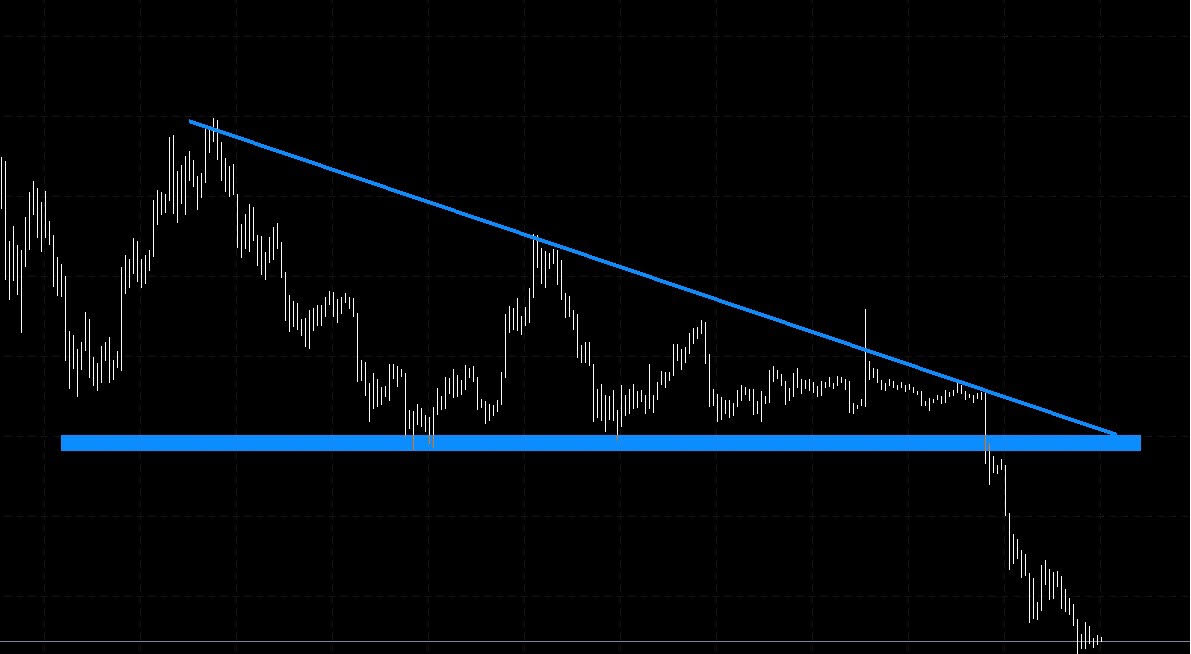 下落基調が明確なチャートパターンのディセンディングトライアングルがでたときは