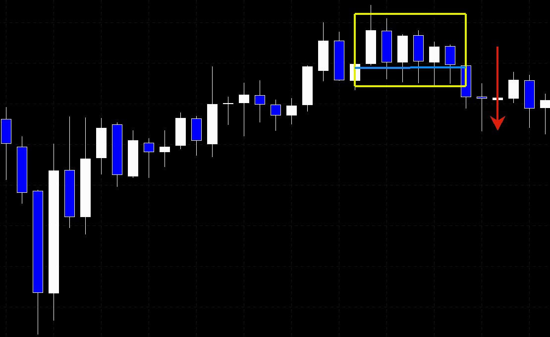 た・な・は行 プライスアクション フォーク相場 2018年12月3日 2019年6月8日 mido-jyoshi フォーク相場 ポイント1 実体部分の高値を切り揃えている ポイント2 同じ様な値幅の上ヒゲが連発 ポイント3 実体が陰線から陽線に変化(上に行く場合) これは、売り圧力から買い圧力が強くなっている現れ ポイント4 下髭も出るが下値限定的で 実体部分を巻き上げている。 フォークを見てみよう 下に行くフォーク相場です フォーク相場のポイントは、陽線だったコマが陰線に変わるところ、それが上下どちらに行きたいのかサイン、値動きを見極めるポイント!< 凄く細かいところですが注意して見ていきたいです! XMの登録方法はここをクリック OANDAの登録方法はここをクリック スポンサー