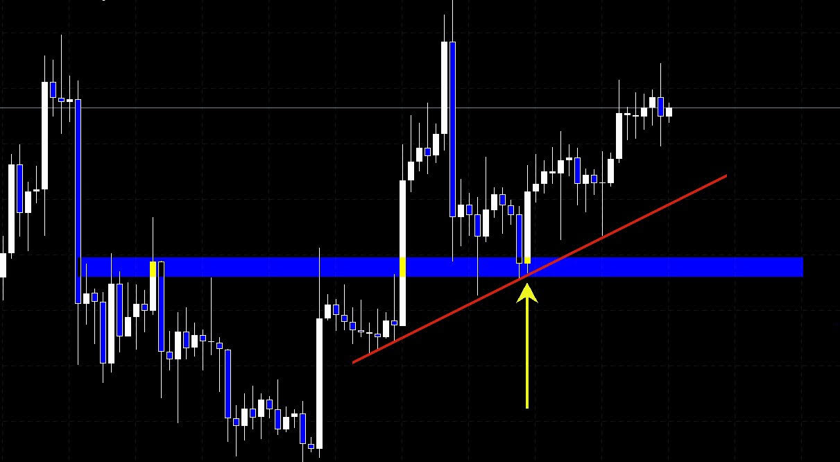 売り買いの抵抗領域とトレンドラインやレジスタンスラインが交わるところが機能しやすい