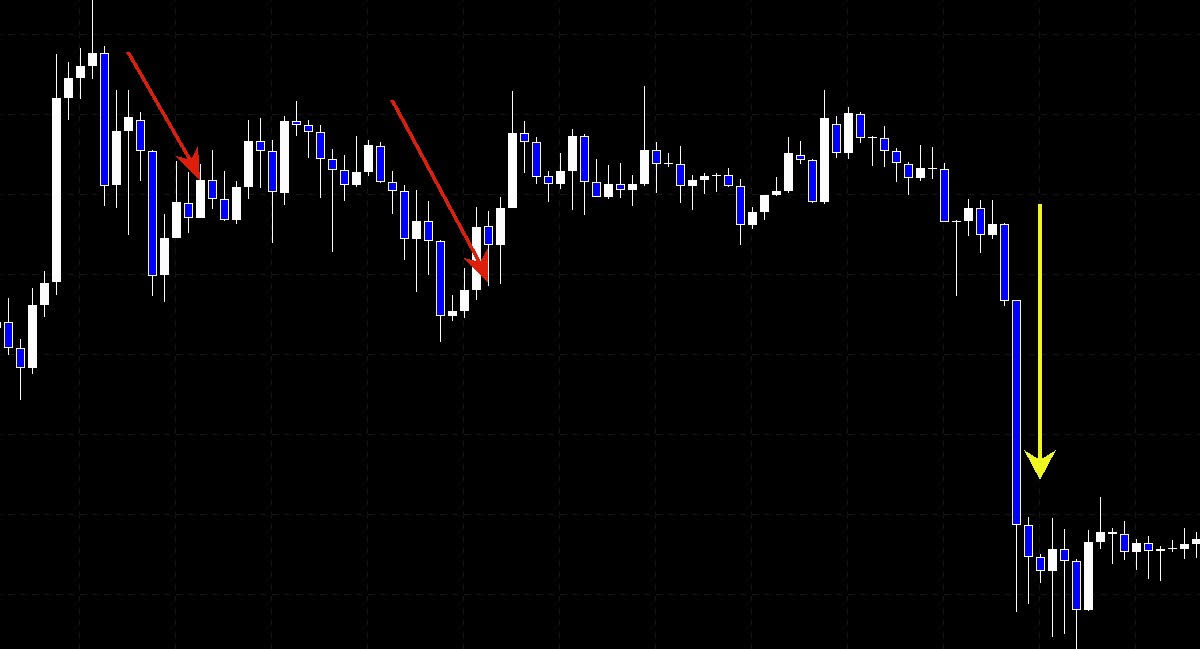 黄色の矢印の下落は、