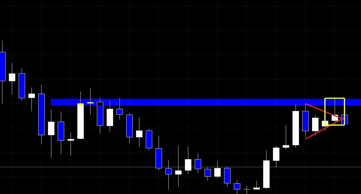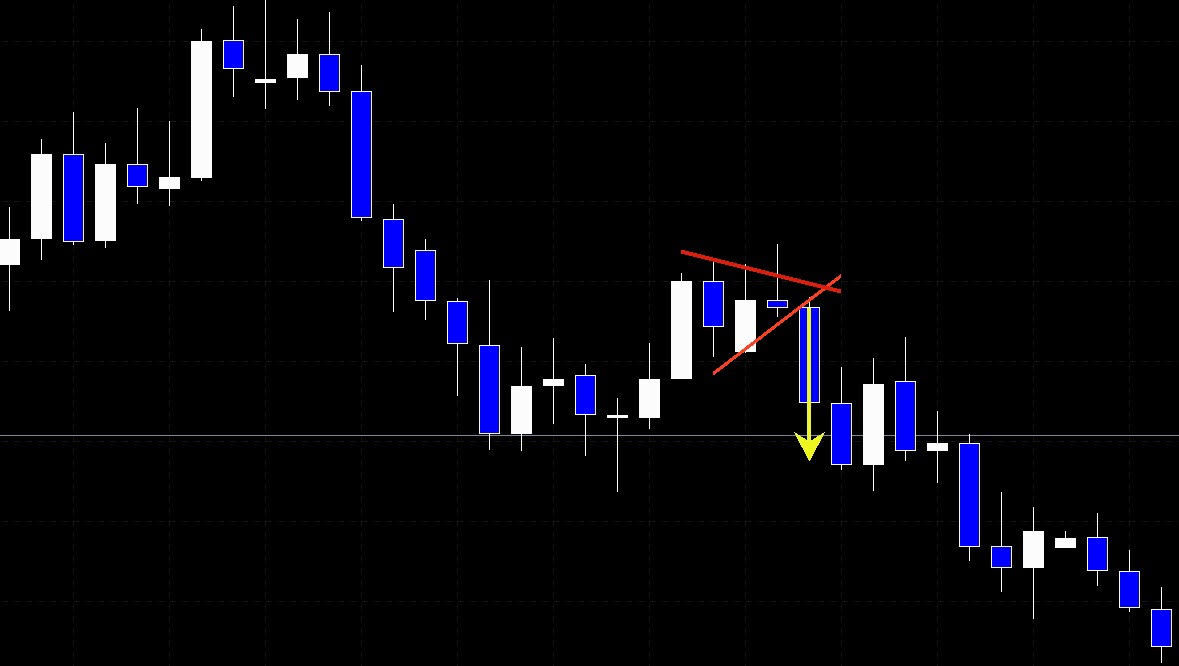 三角保ち合いなどを上にブレイクしているのが望ましい