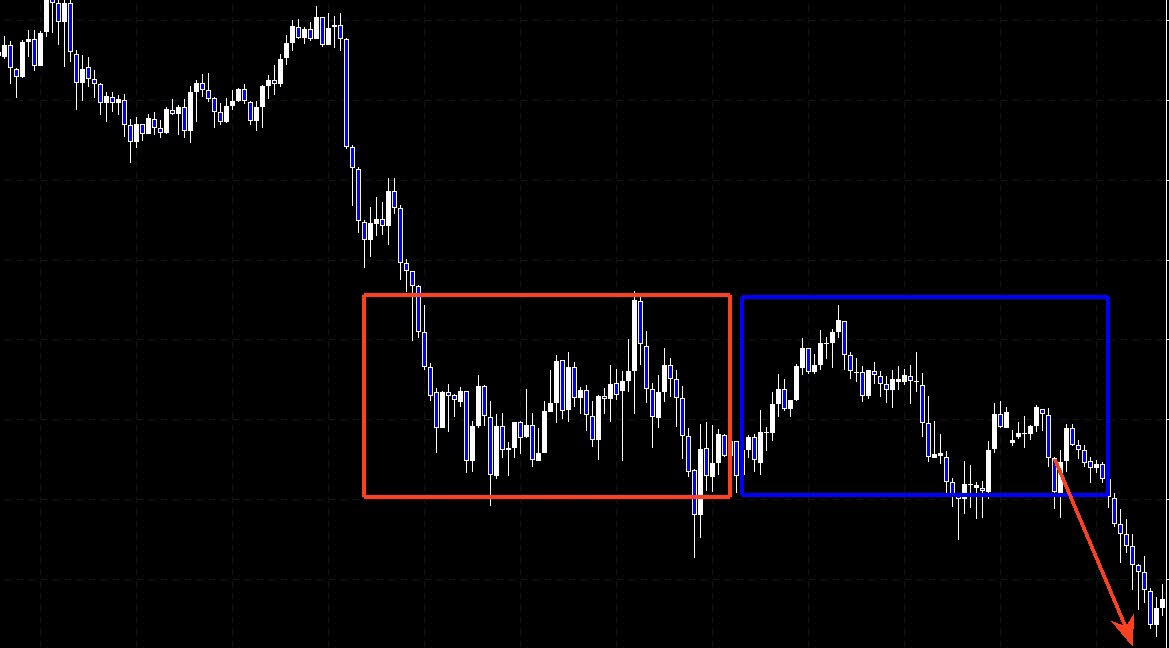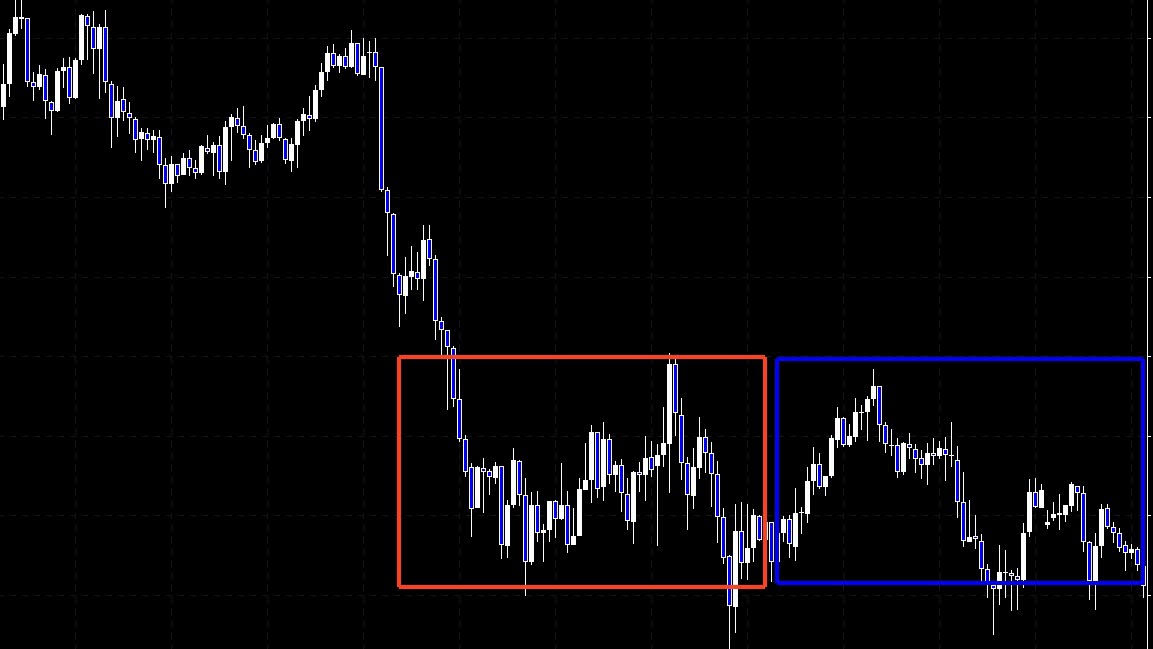 <画像1>のその後は、<画像2>の黄色の枠が画像1の保ち合いの部分