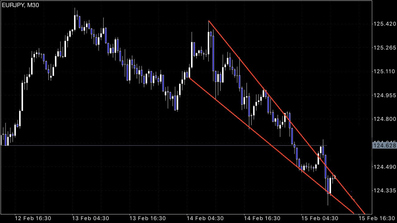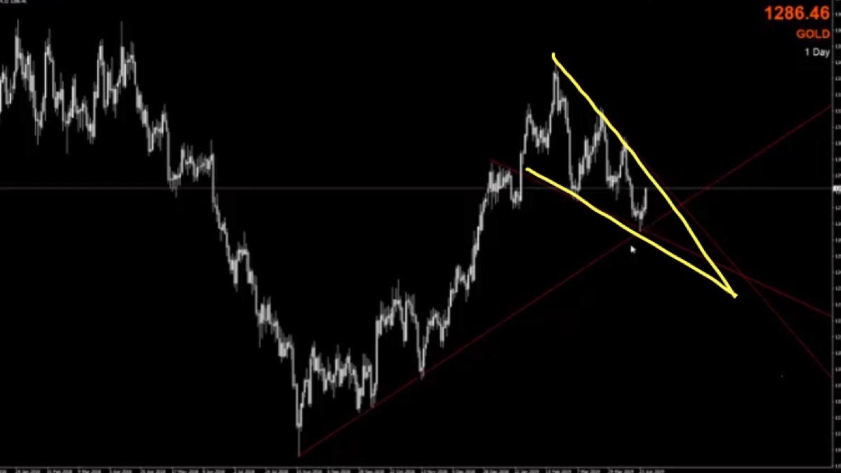 三角の形をしていて上値・下値が共に切り上がって(切り下がって)どんどん先細りになっていくチャートパターンです