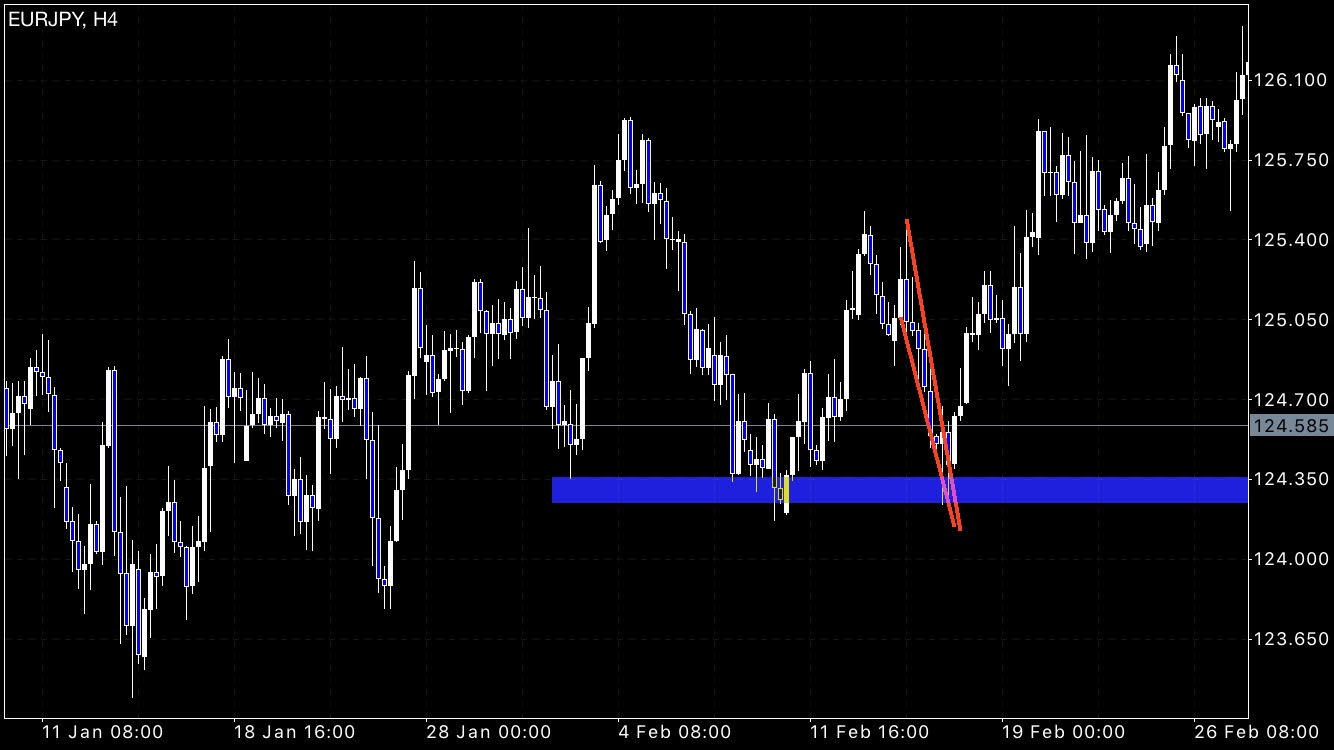 4時間足レベルの買いの厚い抵抗帯で反発し、ウエッジを上抜いてブレイクしていました